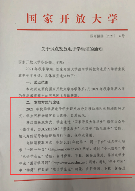 21秋始新生下载入学通知书、电子学生证的通知城铁电大全体师生:接国开大通知,21秋新生开始实行电子学生证,请各班组织好学生下载到本手机中,谢谢!微信下载路径:关注国家开放大学招生公众号>"报读服务">"新生...