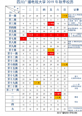 四川广播电视大学2019年秋季校历