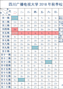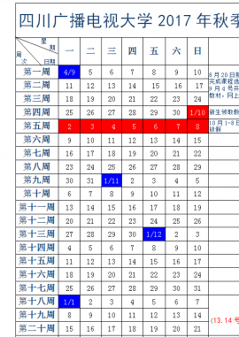 四川广播电视大学2017年秋季校历